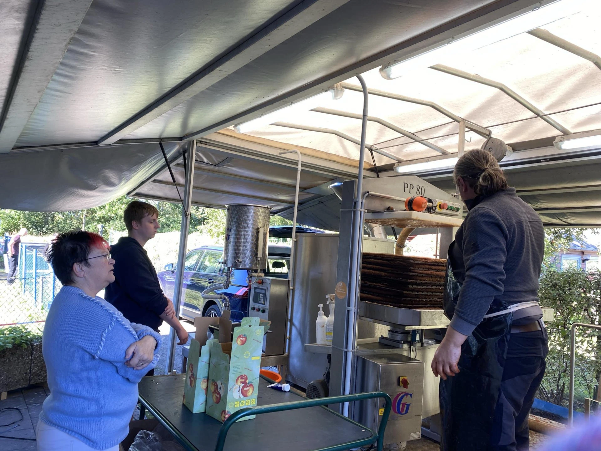 Bei strahlendem Sonnenschein wurden am 24. September fleißig kistenweise selbst geerntete Äpfel aus den Kleingärten gepresst.