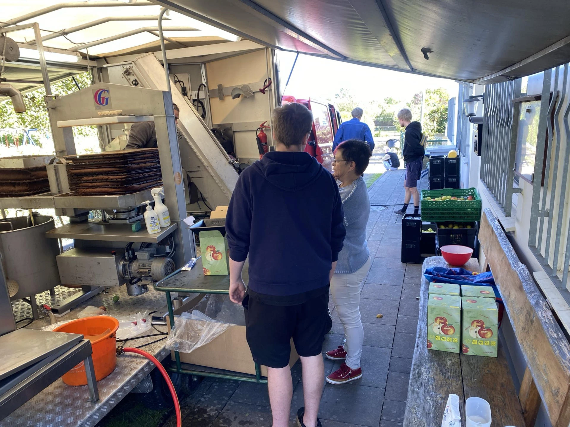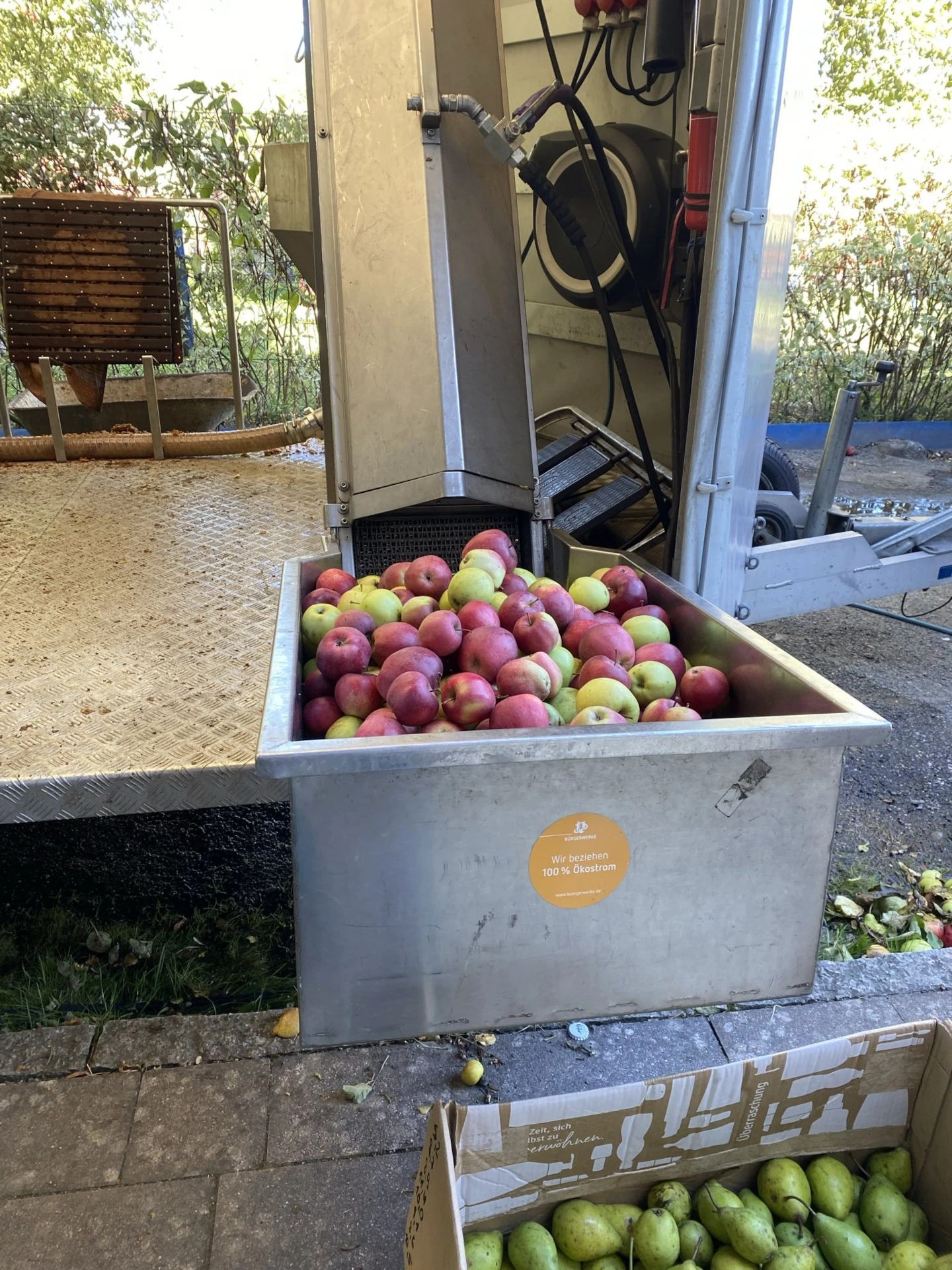 Bei strahlendem Sonnenschein wurden am 24. September fleißig kistenweise selbst geerntete Äpfel aus den Kleingärten gepresst.
